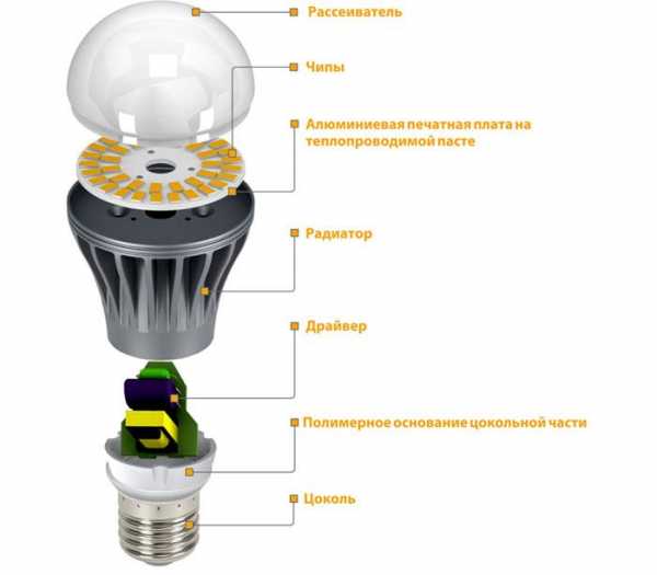 Устройство и принцип работы светодиодной лампы на 220 вольт