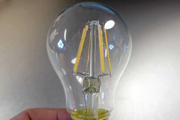 Теперь непосредственно об устройстве лампы. Внешне она мало чем отличается от традиционной лампочки. Она имеет такой же цоколь с резьбой и подходит для всех видов светильников. Но внутри изделие имеет сложную структуру.