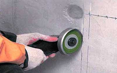 Для этого используйте штроборез или болгарку, с их помощью получаются наиболее ровные углубления. Если такого инструмента не оказалось, не беда, можно попробовать все сделать перфоратором, но для больших участков – это не самый лучший вариант.Лунки для розеток, коробок и выключателей делают перфоратором, используя специальную насадку – фрезу (коронку) по бетону.