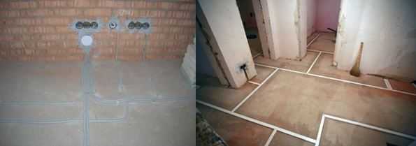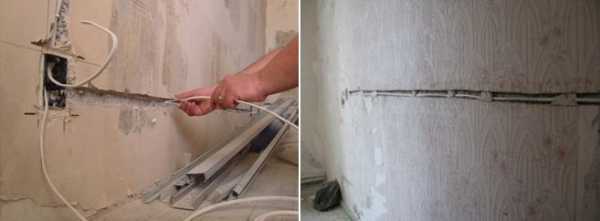 - Крепление проводов в штробах – на алебастре, с последующей шпатлевкой.