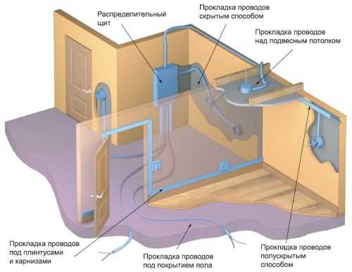 Строители предоставляют на выбор два метода монтажа электропроводки – закрытую и открытую.