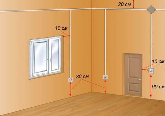 - Вертикальная укладка проводки производится на расстоянии не менее 10 см от оконных и дверных косяков и углов помещения.