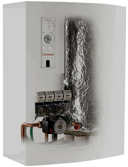 Котел обеспечивает равномерный нагрев воды в системе отопления за счет преобразования получаемой электрической энергии в тепловую.