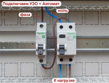 - Нулевой провод (синий) подсоединить непосредственно к УЗО.