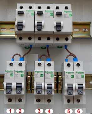 Если планируется обеспечить защиту нескольких линий, например, 6-ти, то в целях экономии можно использовать 3 УЗО и 3 двойных дифавтомата.