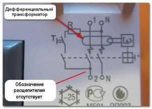 Тогда как на нижней схеме видно (рис.7), что обозначение расщепителей отсутствует, что указывает на принадлежность данного изделия к устройствам защитного отключения.