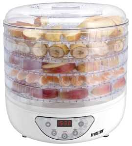 Производитель следующей сушилки гарантирует 100% сохранность запаха, вкуса и состава высушенных продуктов. Прибор с пятью поддонами готовит не только овощи, но и фрукты, мясо, хлеб, травы.