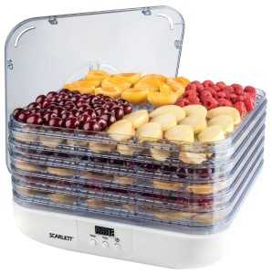 В комплекте с прибором идет краткое руководство, в котором вы найдете советы и секреты по приготовлению разных видов овощей или фруктов. Кстати, Scarlett SC-FD421003 сушит еще и травы, грибы, коренья или мясо.