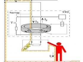 Работают эти устройства по принципу сравнения токов, проходящих по всем проводам линии. В нормальных условиях сумма равна «0», а при пробое изоляции на заземлённый корпус или попадании человека под напряжение появляется утечка, и равенство токов в проводах нарушается. Это приводит к срабатыванию защиты.