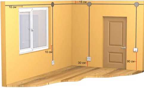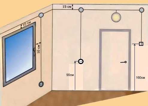 Выключатели размещаются на расстоянии 15-20 сантиметров от откоса внутри комнаты со стороны ручки для открывания.
