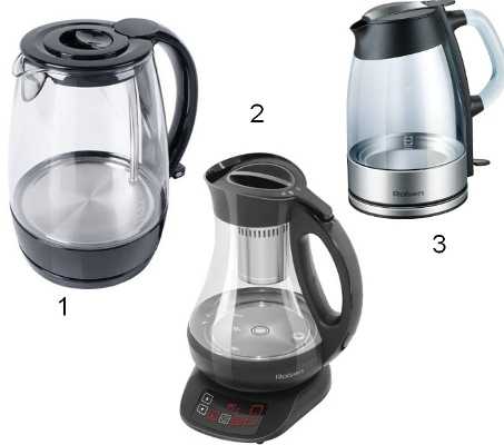 Кроме моделей электрочайников с пластиковым корпусом на рынке представлен широкий выбор стеклянных приборов. Основными их преимуществами является эстетическая привлекательность и экологичность материала. А вот низкая ударопрочность – основной недостаток таких чайников, которые требуют к себе бережного и аккуратного обращения. Часто при изготовлении стеклянных электрочайников используется несколько материалов. Например, корпус выполнен из стекла, а ручка – из пластика. Такая комбинация материалов гарантирует, что при нагреве воды, ручка чайника не будет нагреваться, а, следовательно, вероятность ожога исключена.Диапазон цен на данный тип чайников варьируется в пределах 20 — 80 долларов. Производителями продукции являются: Bork, Polaris, Vitek, Scarlett и Rolsen.