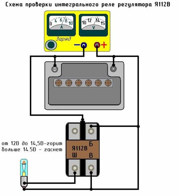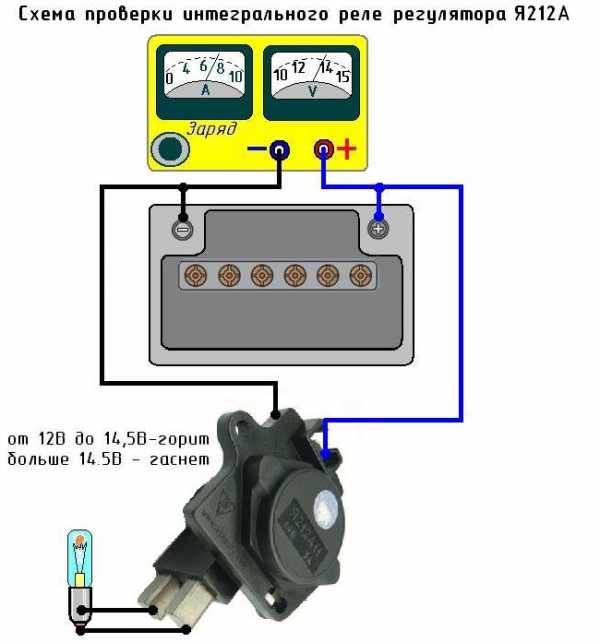 Для проверки реле регулятора его нужно снять с генератора вместе со щеткоткодержателем (если он встроен в генератор, например Г-222 или 17.3702) и собрать схему для проверки.