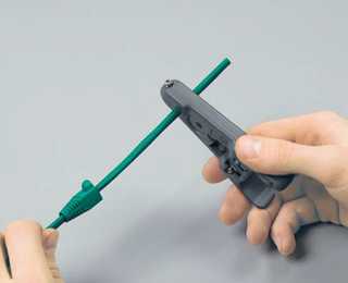 - Чтобы не корячиться с ножом (к тому же можно повредить кабель) , желательно приобрести стриппер(раздеватель) для разделки кабеля.