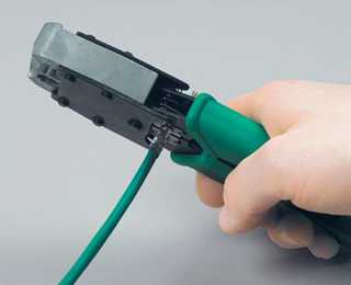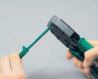 | 13. Для соединения витых пар с ножами разъема используйте кримпер. В процессе обжима ножи вдавливаются внутрь, прорезают оболочку проводников и входят между плетением проволочек. | 14. Наденьте на разъем защитный колпачок. |