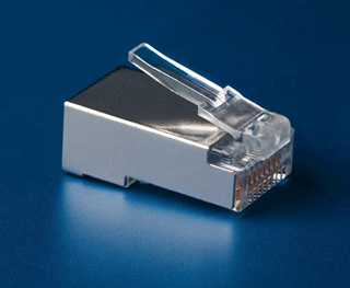 • Сквозные коннекторы EZ-RJ45® производства Platinum Tools® заметно облегчают обжим витой пары. Жилы витой пары не упираются в торец такого коннектора, а выходят наружу, благодаря чему нет необходимости вымерять участок заголения кабеля и подравнивать жилы перед обжимом. После обжима излишки просто срезаются. Есть на AliExpress по цене 800 ₽ за сотню (2017 г.). ▼