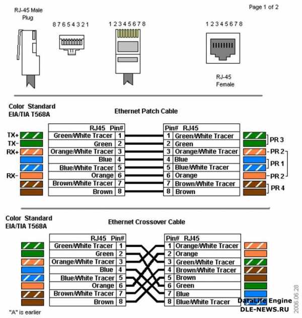 Rj 45 раскладка. Цветовые схемы обжима (распиновки) кабеля витых пар в вилке rj-45