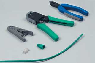 | Для монтажа вам понадобятся: разъем RJ-45 категории 5, колпачок изолирующий RJ-45. кабель витая пара, устройство обжимное для RJ-45, RJ-12, устройство для зачистки и обрезки витой пары. | |