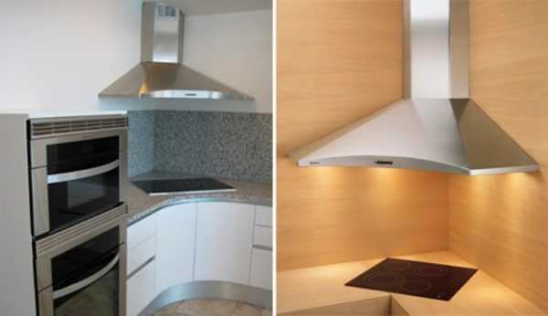 Угловая модель предназначена для монтажа вытяжки в углу помещения.