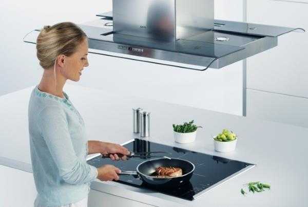 Воздухоочиститель не должен мешать хозяйке, готовить пищу, пользуясь высокими большими кастрюлями.