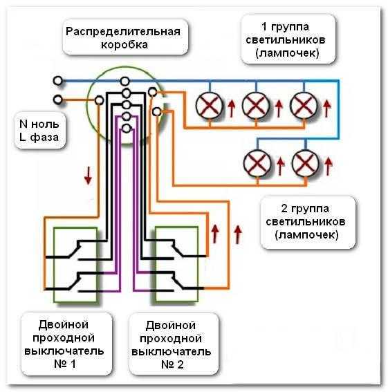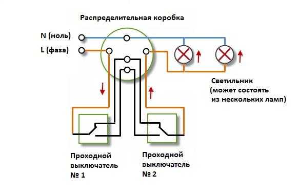 Принцип подключения проходных выключателей