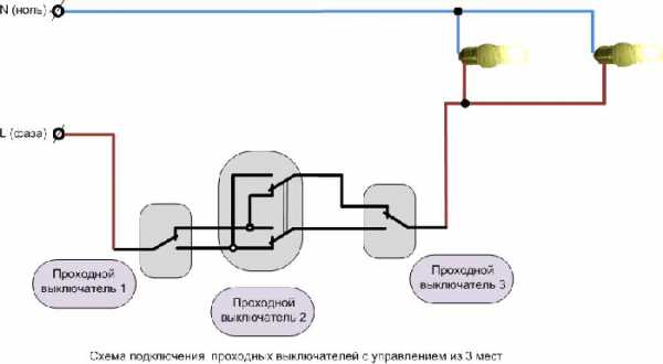 Простая схема проходного выключателя с двух и трех мест