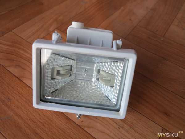 Я же расскажу о модных светодиодных аналогах. Один такой экземпляр я успешно использую с прошлого года. Недавно найдя арматуру (сам прожектор) приобрёл ещё. Изначально прожектор с 150 Вт лампочкой выглядел так: