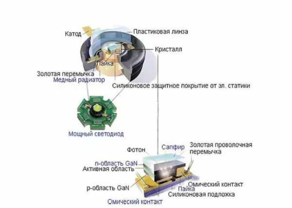 Особенность устройства мощных светодиодов 1,3,5 Вт для прожекторов