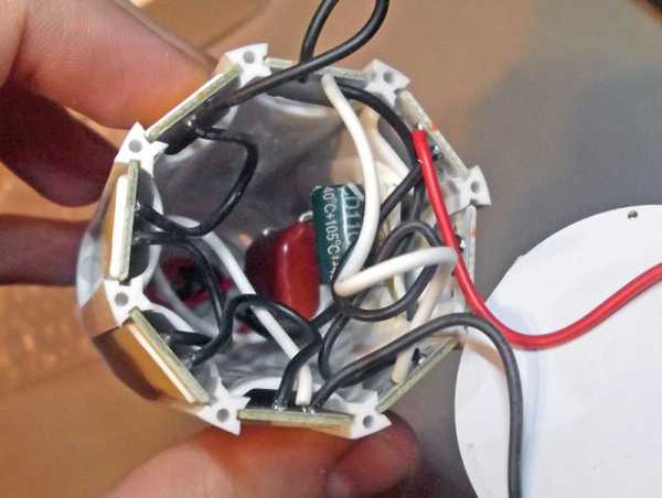Крышки проклеены, но в одну лампочку удалось заглянуть.