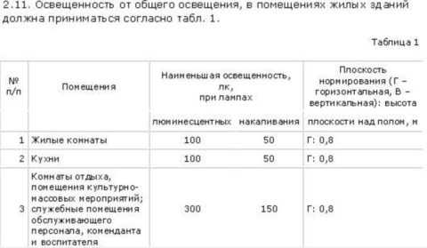 Выбор источников освещения
