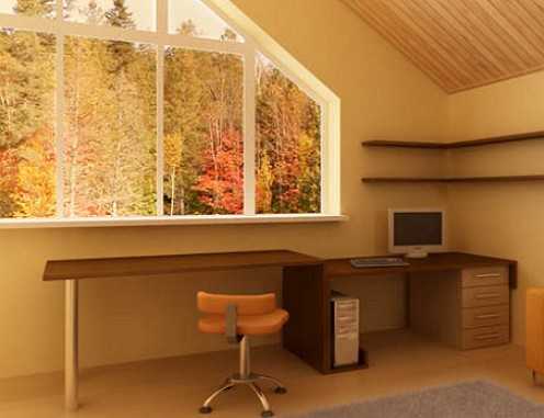 - В-седьмых, особое внимание следует обратить на направление света. Стоит помнить, что естественный источник света здоровый для глаз. Рабочий стол поэтому необходимо разместить у окна, чтобы в течение дня не пришлось использовать дополнительное освещение. Для работы на компьютере в течение дня можно закрыть окно полупрозрачными жалюзи, которые оставляют помещение по-прежнему достаточно светлым, но умягчают солнечные лучи.
