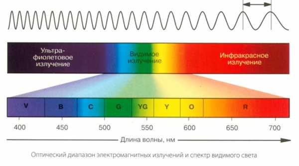 Существует масса различных вариантов для подсветки. Но свет неоднороден, он бывает с разным спектральным составом. Спектральный состав – это зависимость мощности излучения от длины волны. Солнце имеет непрерывную характеристику в видимом диапазоне, а снижается характеристика только в ультрафиолетовом спектре и инфракрасном.