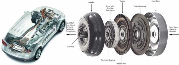 Для эффективного выполнения всех функций, коробка автомат имеет следующие элементы: гидротрансформатор, узел контроля и механизм выбора режима движения.