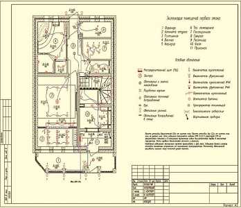 Специалисты предлагают разрабатывать схему, выделяя несколько групп. Например, по каждому помещению дома отдельно или «освещение — электроснабжение розеток — внешнее освещение». Это упрощает дальнейшую работу и более точно позволяет рассчитать необходимое количество материалов.