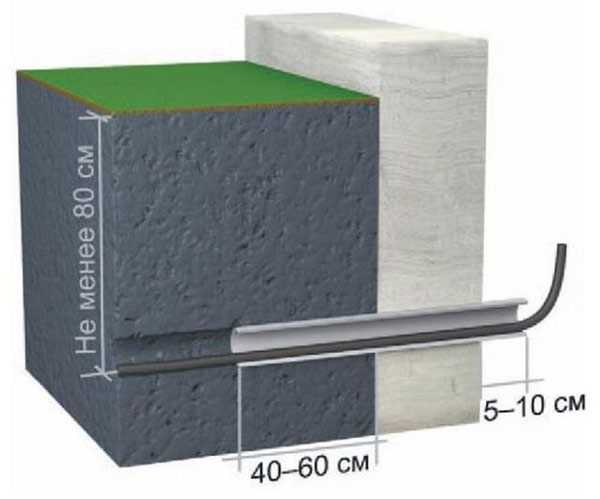Более надежна, поскольку кабель скрывается в грунте и не подвергается влиянию внешних отрицательных факторов. Но обойдется все это дороже, поскольку придется проводить как минимум земляные работы. Глубина прокладки должна составлять минимум 80 сантиметров, а зону вокруг него следует обозначить соответствующими табличками. Для прохода кабеля через фундамент в обязательном порядке используются отрезки металлических труб с толстыми стенками.