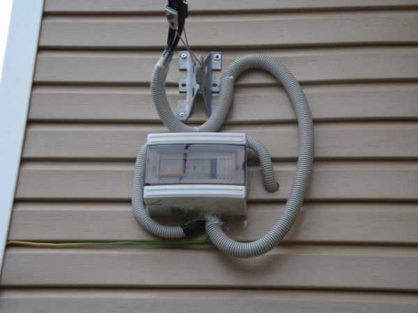 - Наконец, можно вынести на наружную стену здания и приборы учета, и автомат (либо даже на столбы линий электропередач). Надежность в данном случае, безусловно, высокая, однако об удобства для владельцев говорить не приходится.