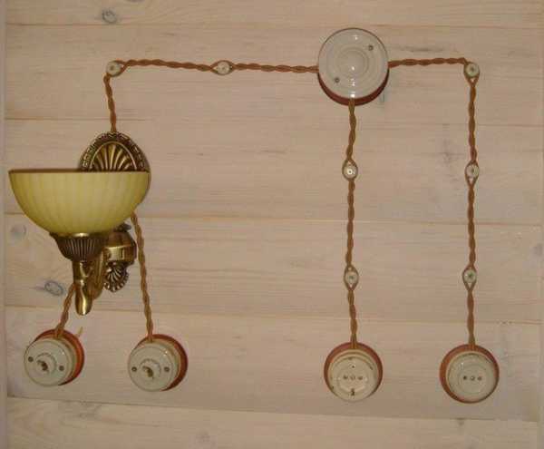 Электрические схемы для дома из дерева, реализованные открытым кабелем. Такой метод прокладки электрического провода не теряет популярности в современных домах. «Ретро проводка» на изоляторах, правда, обладает целым рядом достоинств.
