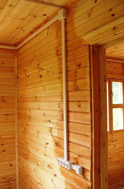 В деревянных сооружениях проводка может быть сделана открытым или закрытым способом. Под этим понимается внешний вид электропроводки. Проводку можно прокладывать в плинтусах с кабель каналом, коробах, трубах ПВХ и металлических.