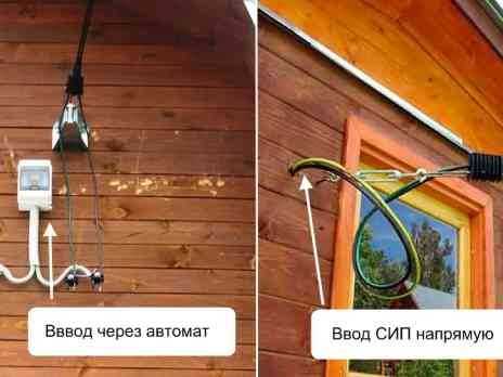 Вход электролинии в деревянное здание