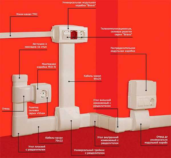 - Использование кабель-каналов. Фактически это та же открытая проводка, только уложенная в специальные лотки.