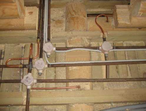 Проще говоря, в деревянном доме необходимо тянуть вторую систему из металлических труб, как для водопровода, но только уже для прокладки в них электрической проводки.