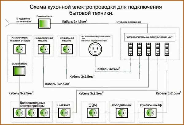 - Розетки монтируются на небольшом расстоянии от приборов, которые будут к ним подключены. На кухне делаются розетки для каждого вида бытовой техники.