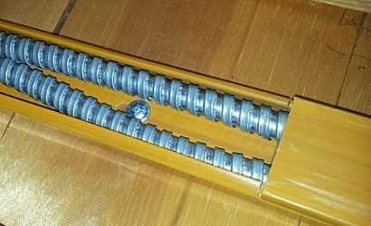 - Можно спрятать весь участок в металлическую трубу, имеющую перечисленные выше параметры. Но это можно сделать, только если на участке нет большого числа поворотов, а сам он составляет 2,5-3 метра в длину. Если длина будет больше, то вы вряд ли протолкнете такой кабель в просвет трубы.