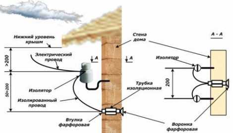 Самое уязвимое место – это проход провода через деревянную стену чердака. Некогда считалось, что кусок резинового шланга вполне может обеспечить должную безопасность. Но подобный вход также опасен, ведь в резине имеется сажа – углерод, по сути, способный проводить ток. И когда такая изоляция стареет, то возникают электропроводящие «мостики», характеризуются высоким удельным сопротивлением. Некоторые участки могут прогреваться и искриться, чего вполне хватит для обычных сухих досок.