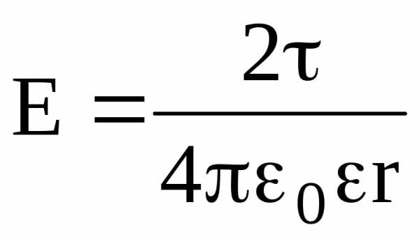 Напряженность поля, создаваемого бесконечно длинной и равномерно заряженной нитью (или цилиндром) на расстоянии r от ее оси, –