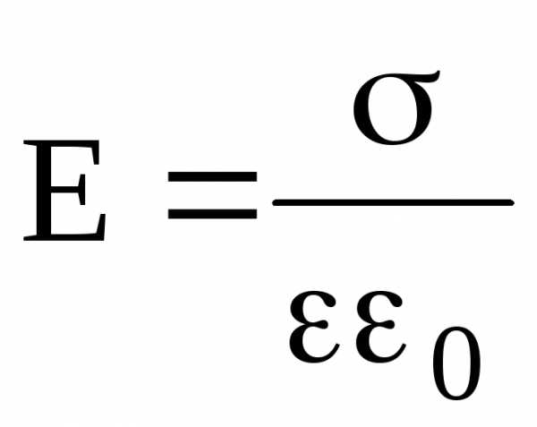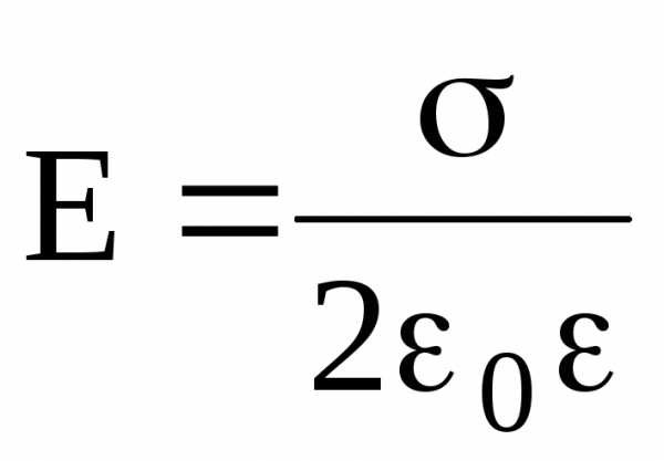 Напряженность поля, создаваемого двумя бесконечными и параллельными плоскостями, заряженными равномерно и разноименно, с одинаковой по абсолютному значению поверхностной плотностью заряда (поле плоского конденсатора) –
