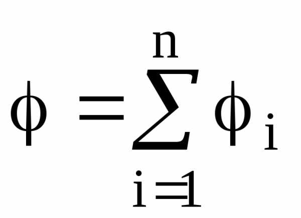 – алгебраическая сумма зарядов, заключенных внутри замкнутой поверхности; n – число зарядов.