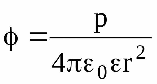 где р – электрический момент диполя; r – абсолютное значение радиус-вектора, проведенного от центра диполя к точке, напряженность поля в которой нас интересует; - угол между радиус-вектором