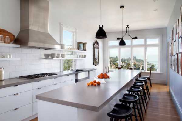 Дизайн просторной кухни, оформленный в белом цвете