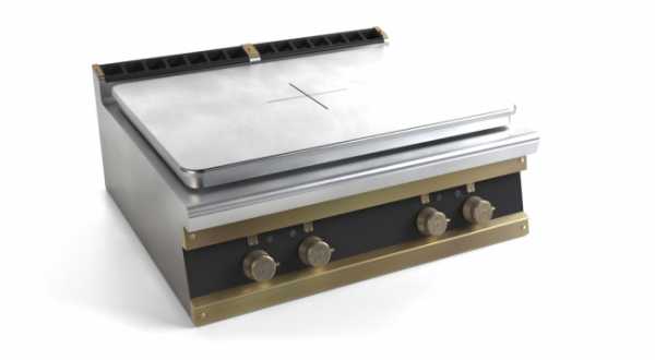 Газовая конфорка наверху. Отличается от системы Drop-In тем, что имеет округлую форму и отсутствует духовой шкаф. Ручки управления находятся на переднем фартуке. Панели, у которых газ расположен наверху, более мощные, чем их аналоги.