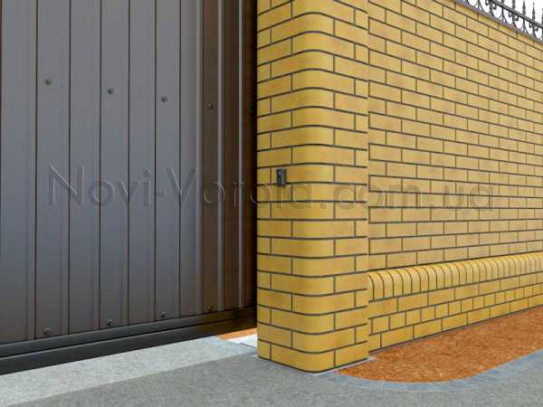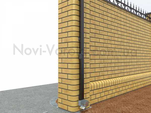 Вариант крепления фотоэлементов на кирпичном столбе, изготовленного из кирпича "рваный камень".